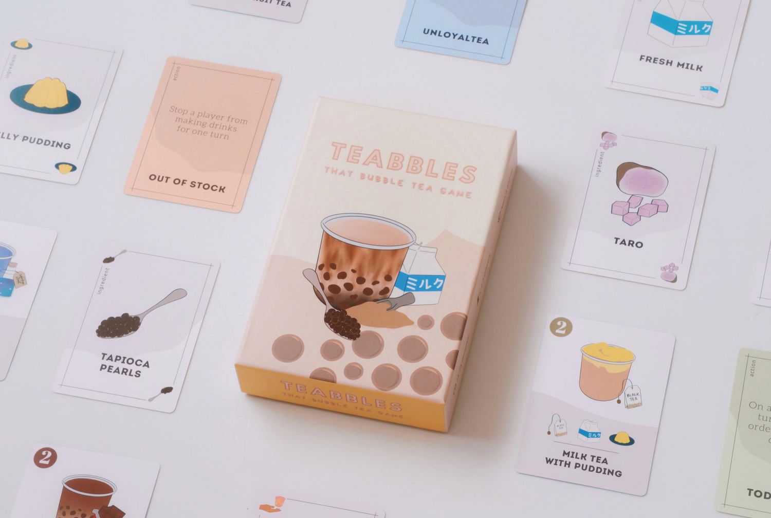 Explore our flagship creation, Teabbles, where the world of bubble tea meets immersive gameplay. Explore the art of strategy as you collect ingredient cards to concoct the perfect blend, all while navigating surprise challenges and outsmarting your opponents. Immerse yourself in a flavorful journey where every card holds the key to victory. Discover the magic within Teabbles and embark on a delightful adventure of strategy and fun!
